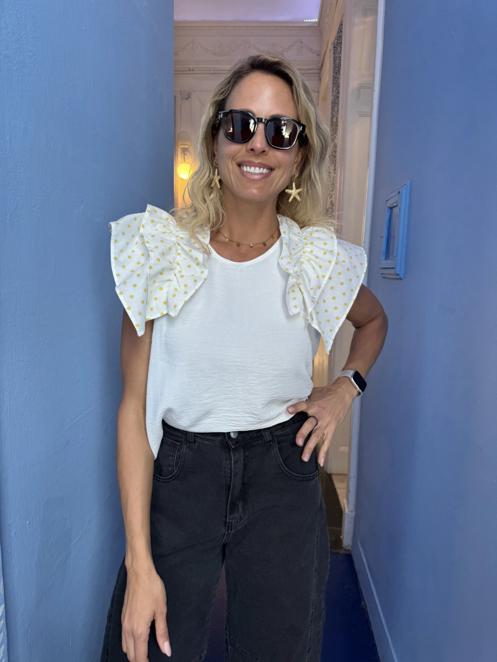 Blanca+Lunares Amarillos