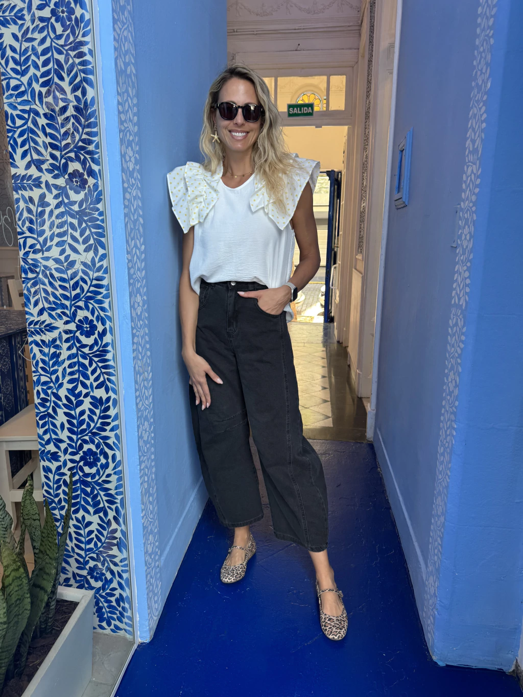 El jean barrel se caracteriza por tener un corte ancho en la parte superior de la pierna y estrecharse ligeramente hacia los tobillos, creando una silueta curva. Es cómodo, moderno y tiene un aire muy relajado pero sofisticado.