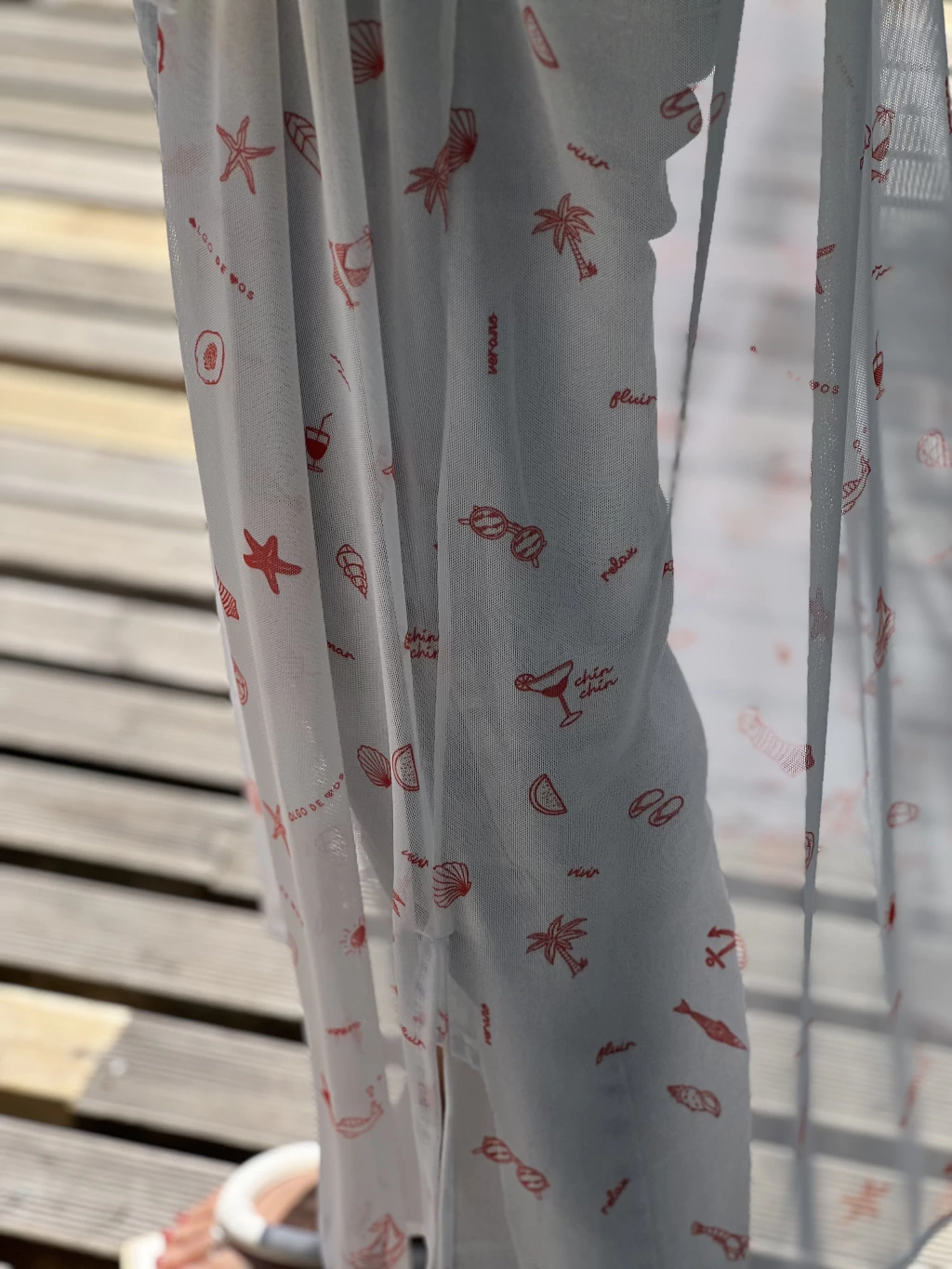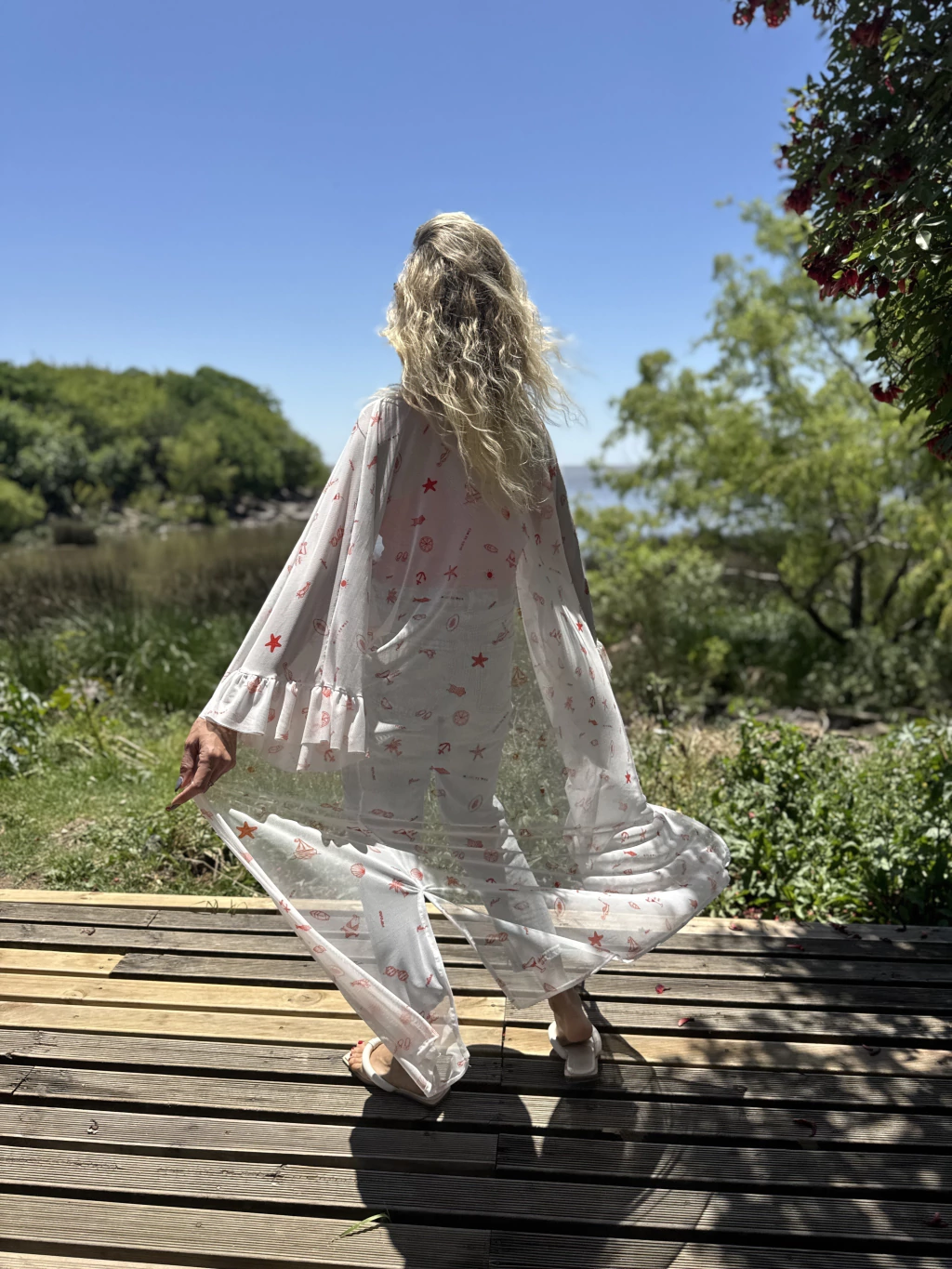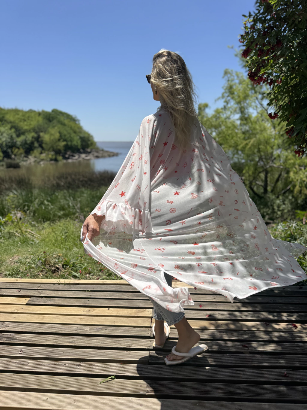Kimono largo de tul con volado en las mangas y tajos en los laterales.